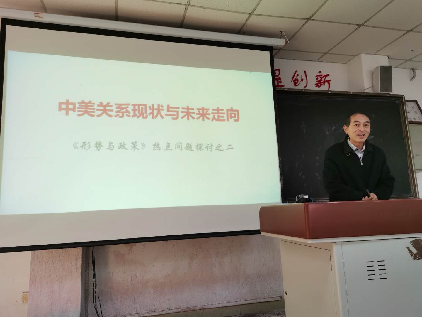 2020年10月21日上午8:00—9:50,QY球友会体育形势与政策教研室在8112教室举行了《形势与政策》课程第二次集体备课会。QY球友会体育副院长、李文政教授做了“中美关系现状和未来走向”的主题报告。QY球友会体育教师、各二级学院形势与政策任课教师共四十余人聆听了李教授的精彩报告。