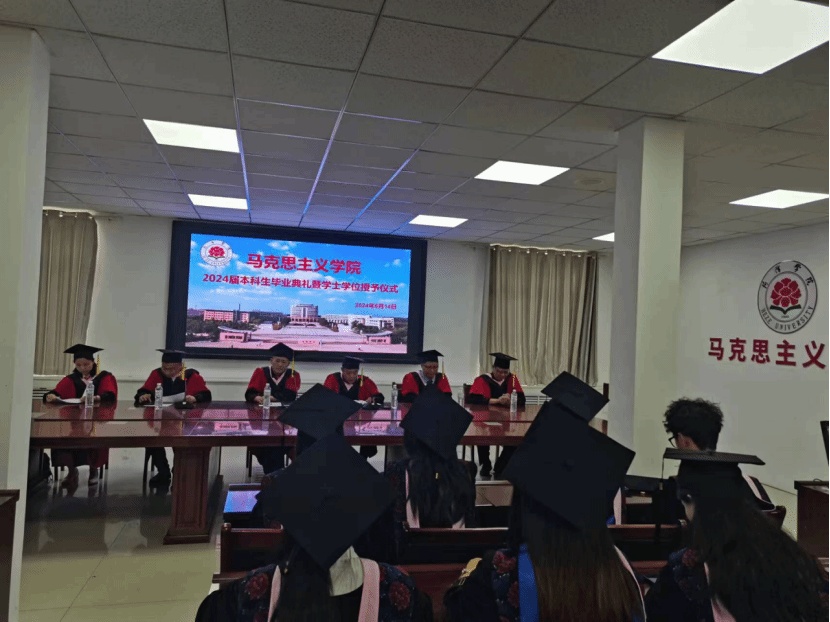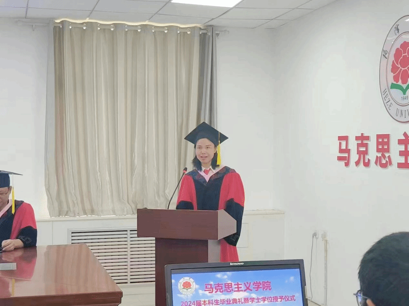 6月14日上午,马克思主义学院2024届学生毕业典礼暨学士学位授予仪式在1号教学楼301会议室隆重举行。QY球友会体育党委书记陈支庆、院长王庆高、党委副书记兼副院长张志伟及马克思主义学院教师代表、2024届思想政治教育专业全体毕业生参加典礼。此次典礼由马克思主义学院党委副书记兼副院长张志伟主持。