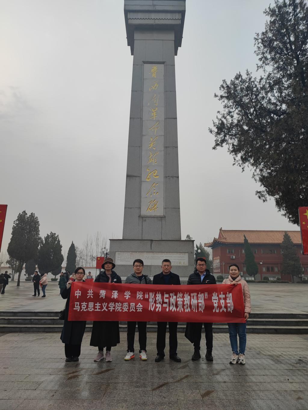 来到鲁西南烈士陵园,党员们听取了烈士陵园情况介绍,向革命先烈敬献花篮,向抗日烈士纪念碑行礼鞠躬、重温入党誓词,过政治生日的党员代表进行了发言。