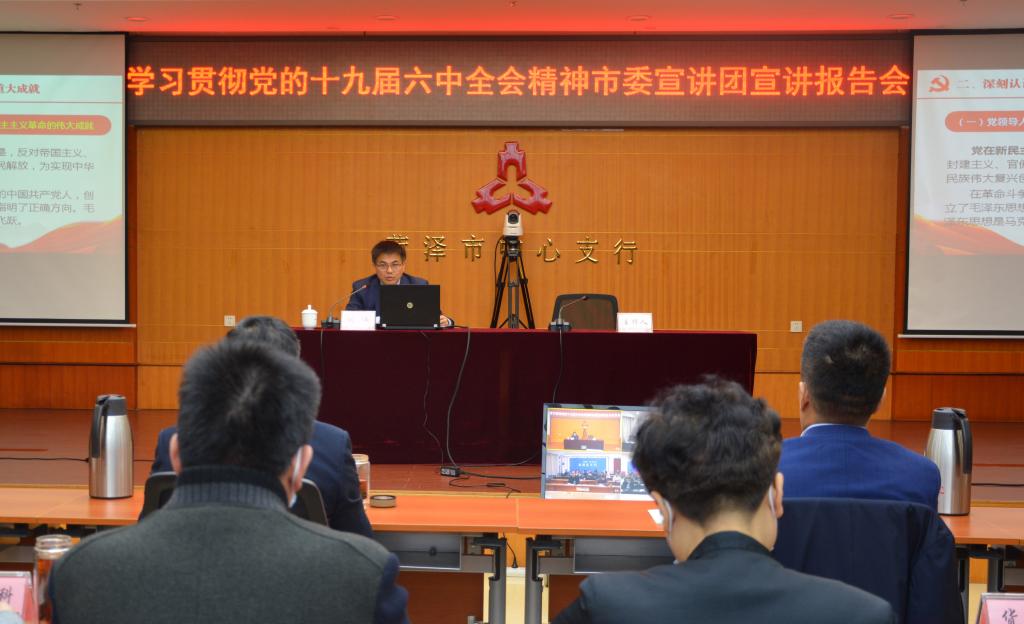 为全面深入学习宣传贯彻党的十九届六中全会精神,近日,市委宣讲团成员、校宣讲团成员、QY球友会体育院长、教授闫伟同志到菏泽市中心支行开展学习贯彻党的十九届六中全会精神专题宣讲。
