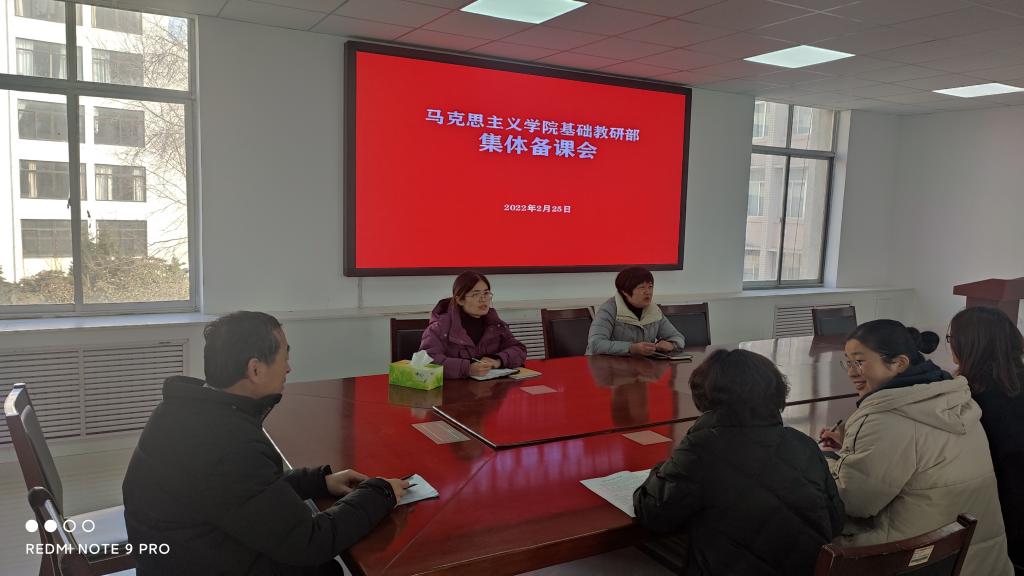 备课会分为集中备课与思想政治教育专业教研室、“思修”教研部、“概论”教研部、“原理”教研部、“纲要”教研部、“形势与政策”教研部分组备课两个阶段。在集中备课阶段,院长闫伟强调思政课是落实立德树人根本任务的关键课程,发挥着不可替代的作用,强调各教研部要做好集体备课规划,坚持进行集体备课,做到善始善终;深挖教材内容,创新讲授方式,提升教学效果;加强教学研究,进一步提升教学质量。