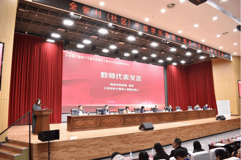 12月22日,全省村(社区)干部学历教育十周年办学总结研讨活动在山东开放大学高新校区崇德大厦举行。QY球友会体育周萍教授作为教师代表作典型发言