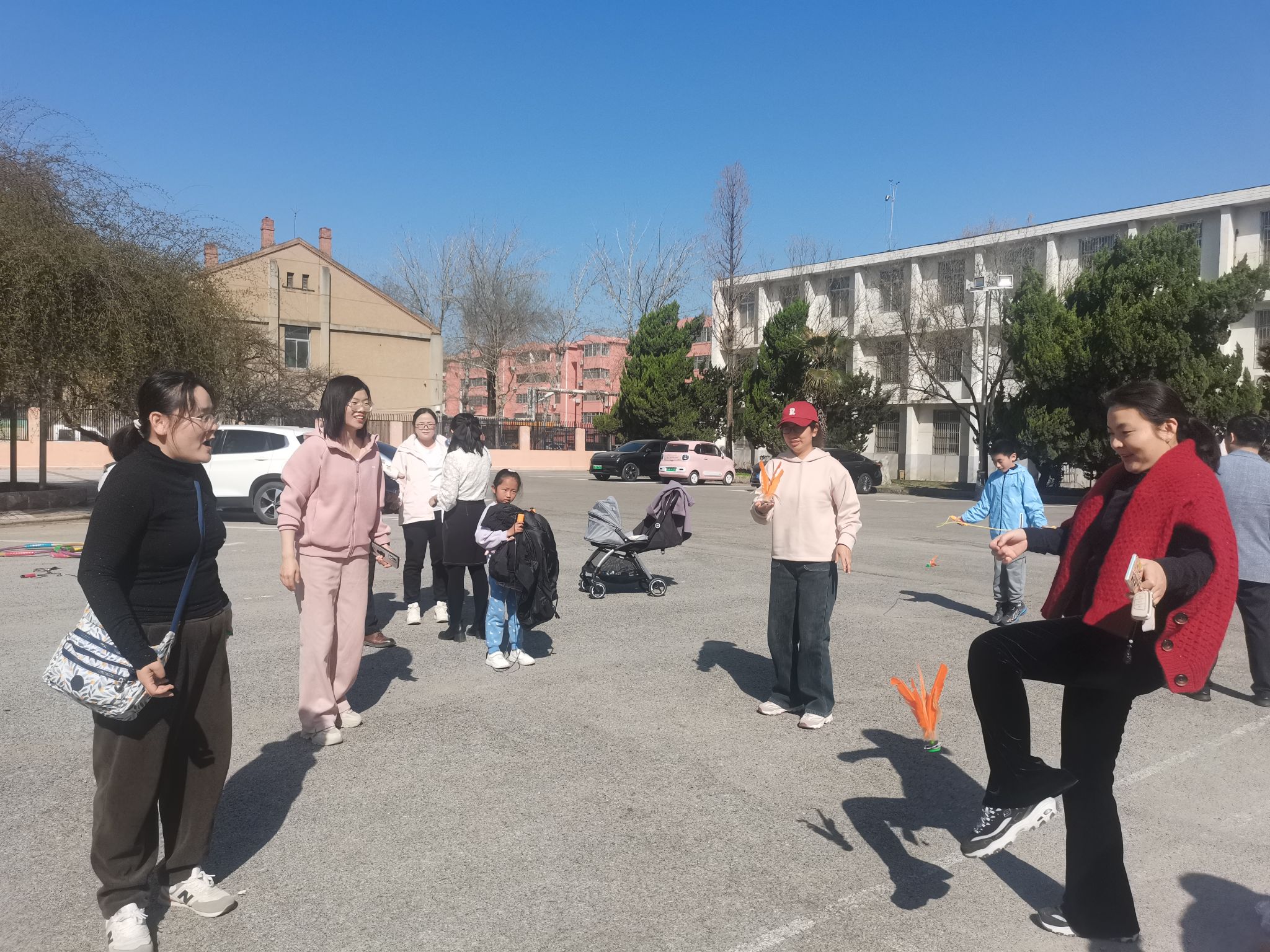 本次运动会设置多人跳绳、扔飞镖、呼啦圈、踢毽子、套圈和夹乒乓球等六个项目。