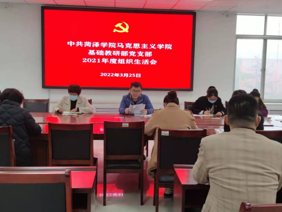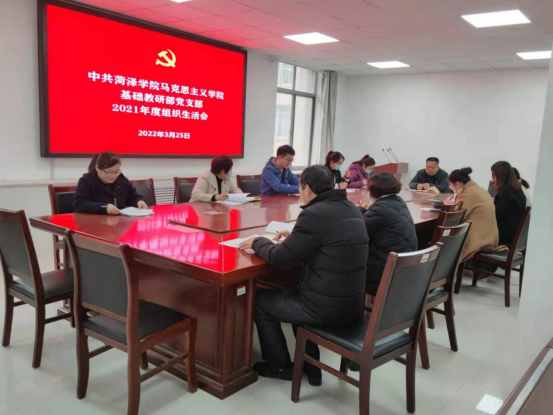 根据上级党委有关要求,基础教研部党支部于2022年3月25日上午8:30-10:30,在一号教学楼301室召开了2021年度组织生活会。