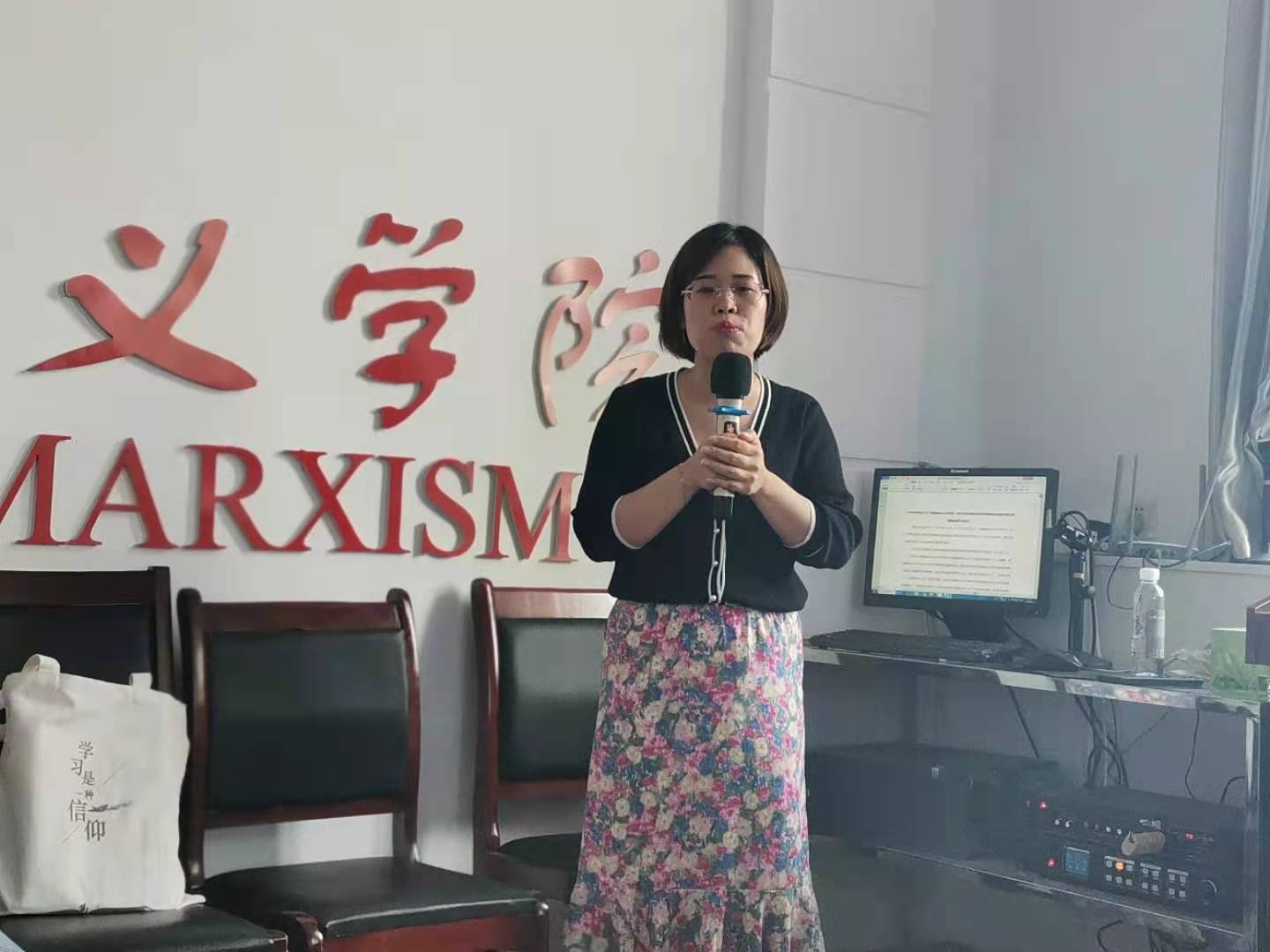 培训中,赵玉霞老师以着手准备省首届思政课教学设计大赛为切入点,为全体教师做了《教学设计样例、课堂实录与教案》的报告。她从教学设计的流程与内容,教学设计撰写与课堂实录呈现和教案撰写三个方面,以案例分析的形式,对课程教学设计进行了生动、细致、全面、深入的讲解。其中,基于OBE理念的逆向教学设计、基于两性一度的逆向教学设计等内容让老师印象深刻,受益匪浅。