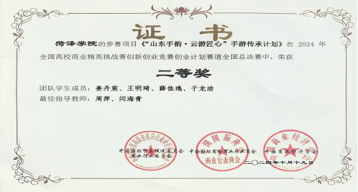 近日,由中国国际贸易促进委员会商业行业委员会牵头主办第十二届全国高校商业精英挑战赛创新创业竞赛创业计划赛道全国总决赛落下帷幕。由我校QY球友会体育周萍和闫海青两位老师指导,思想政治教育专业学生姜丹宸、王明琦、薛仕逸、于龙杰组成的“鲁艺联盟”从全国1427支队伍中脱颖而出斩获荣获全国二等奖,为我校赢得了荣誉。