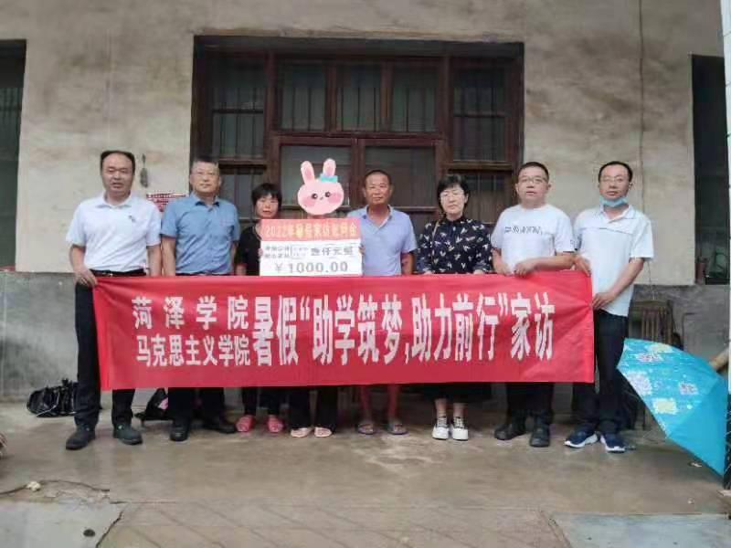 7月8日上午,学生工作处副处长刘夏菡QY球友会体育党委书记陈支庆、党委副书记柳杨、辅导员欧安欣、班主任代表张志伟等一行不顾高温酷暑,前往巨野走访慰问QY球友会体育2019级困难学生。