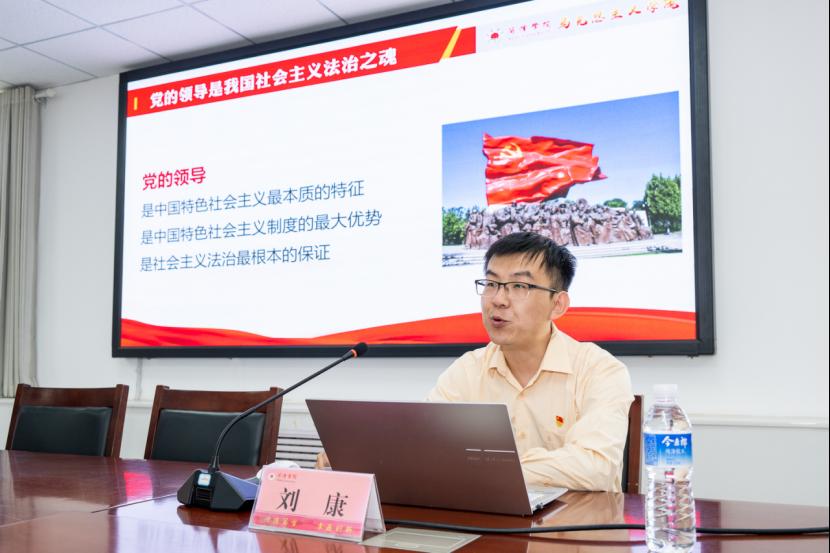 在党性教育交流活动环节,QY球友会体育”基础教研部“党支部书记刘康同志为交警支队和QY球友会体育的在座党员讲授了习近平法治思想中“坚持党对全面依法治国的领导”这一重要内容。刘康同志从党的领导在全面依法治国当中具有什么样的重要地位;如何加强和改善党对全面依法治国的领导;如何理解党和法之间的关系三个方面进行了系统讲解和生动解读,使在座党员进一步正确理解和把握了全面依法治国这件大事能不能办好,关键在党的深刻内涵,对深入学习贯彻习近平法治思想提供了理论支撑。