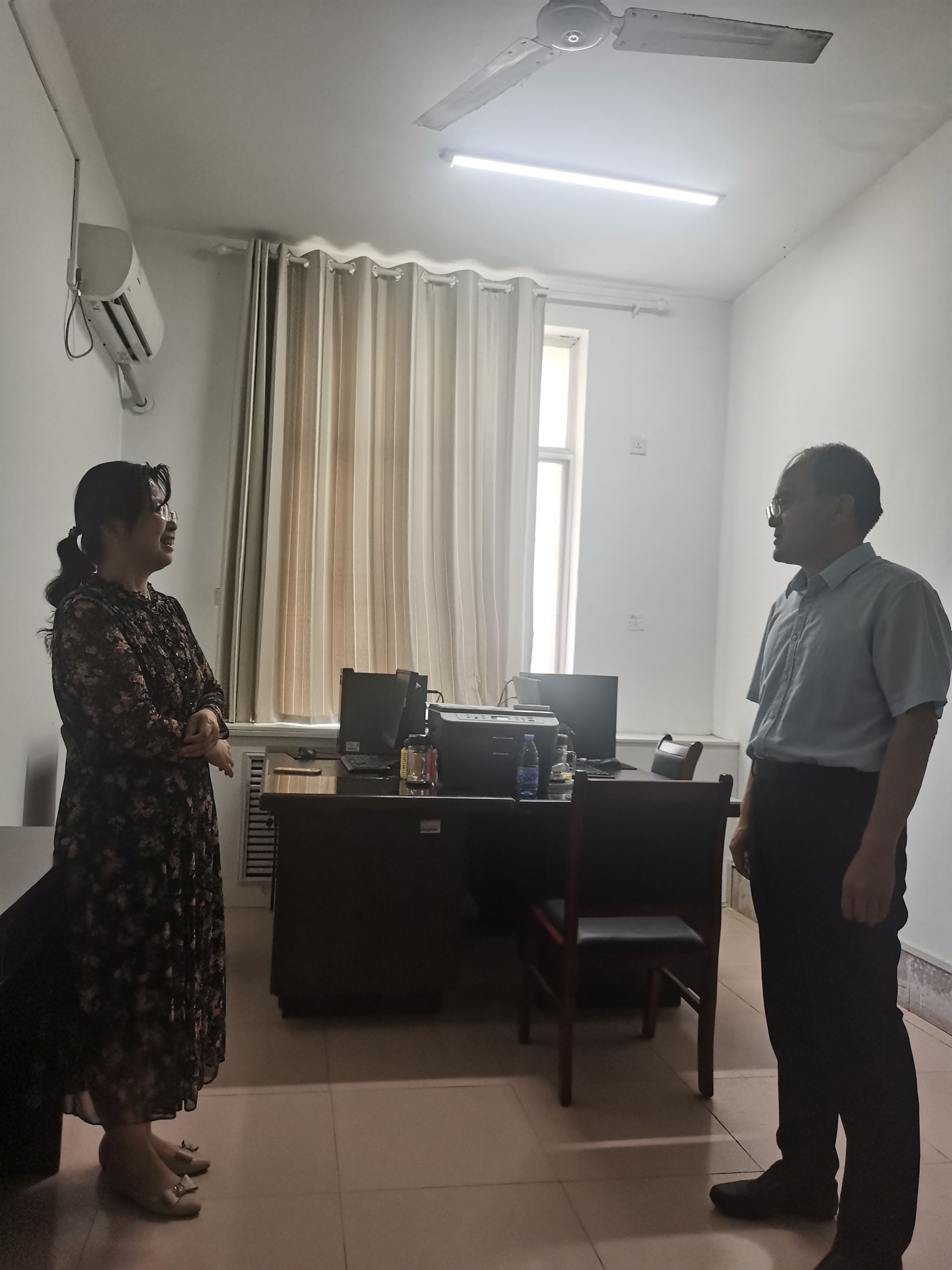 会前,黄富峰与教师代表李莉进行了亲切交流,详细询问了其工作情况和教学科研等方面的需求,勉励李莉老师继续勤奋耕耘、勇于创新。