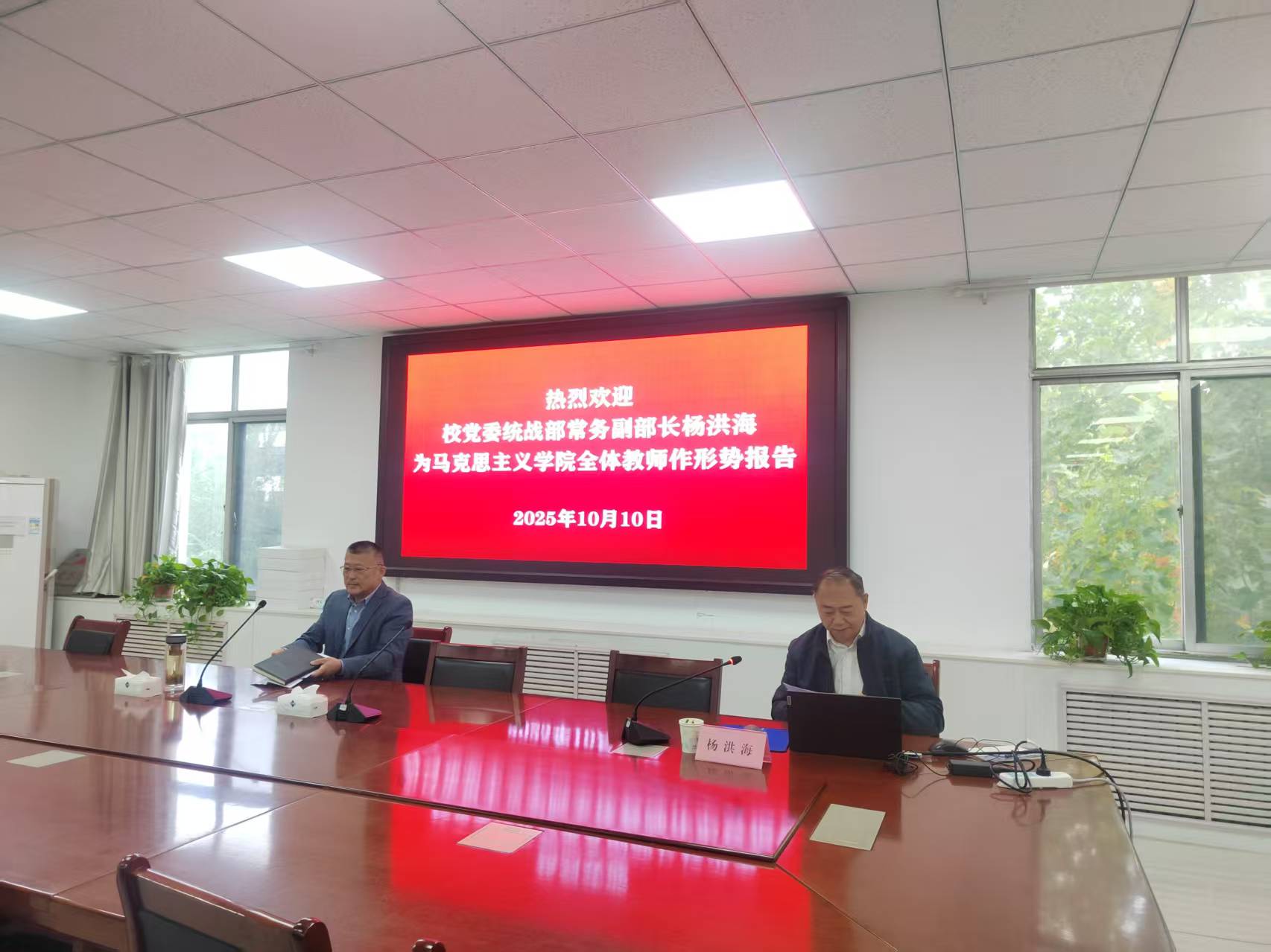 校党委统战部常务副部长杨洪海为QY球友会体育全体教师作形势报告