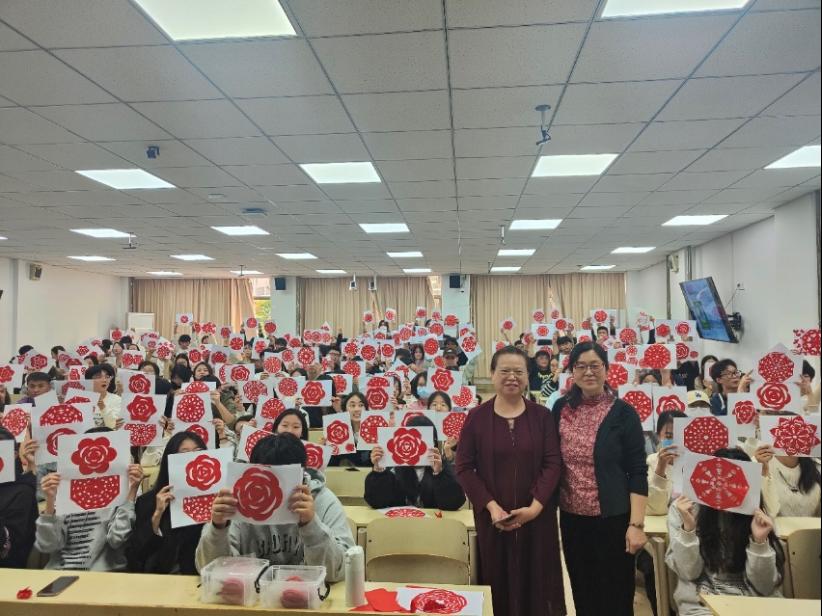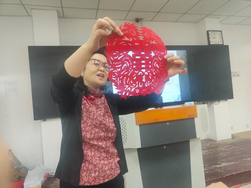 10月22日,菏泽市非物质文化遗产项目“曹州剪纸”传承人刘爱华老师、周艳丽老师为同学们授课。